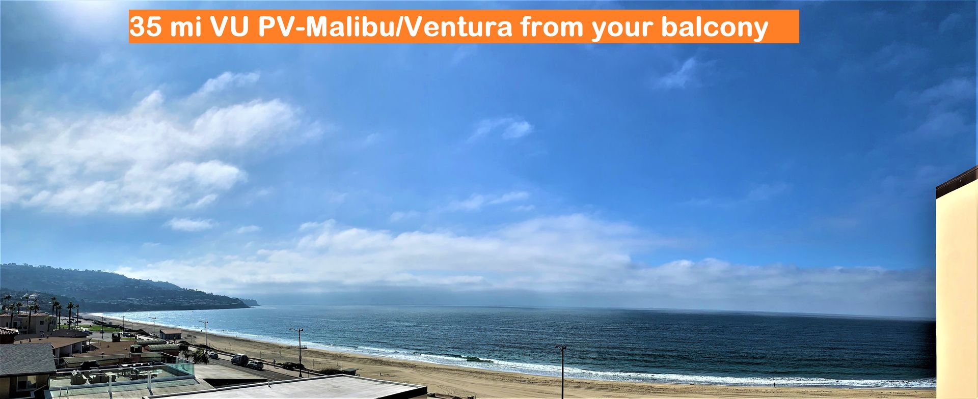 Endowed with a 35 mile View of Santa Monica Bay from the red tile roofs of Palos Verdes to Malibu on to Ventura. Beach Bike path voted best in CA is in the front yard of this Building where walkers, joggers bikers sail kiters and bench warmers are to be found.