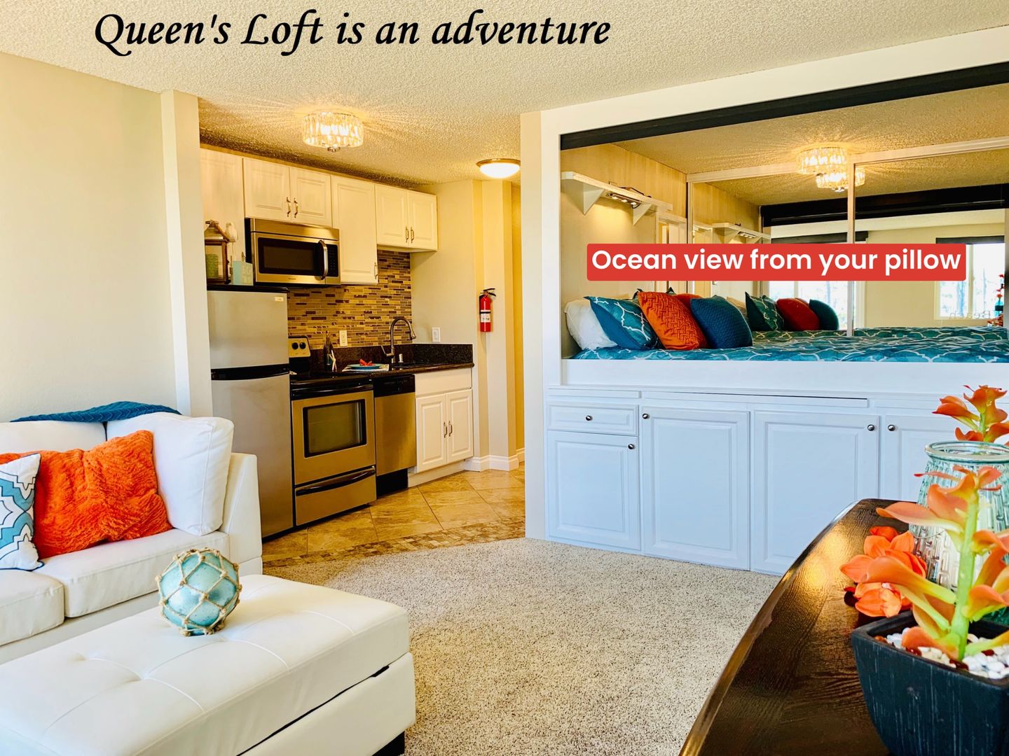 Imagine Ocean Views from your Pillow when relaxing in your Queen’s Loft Kabuki.