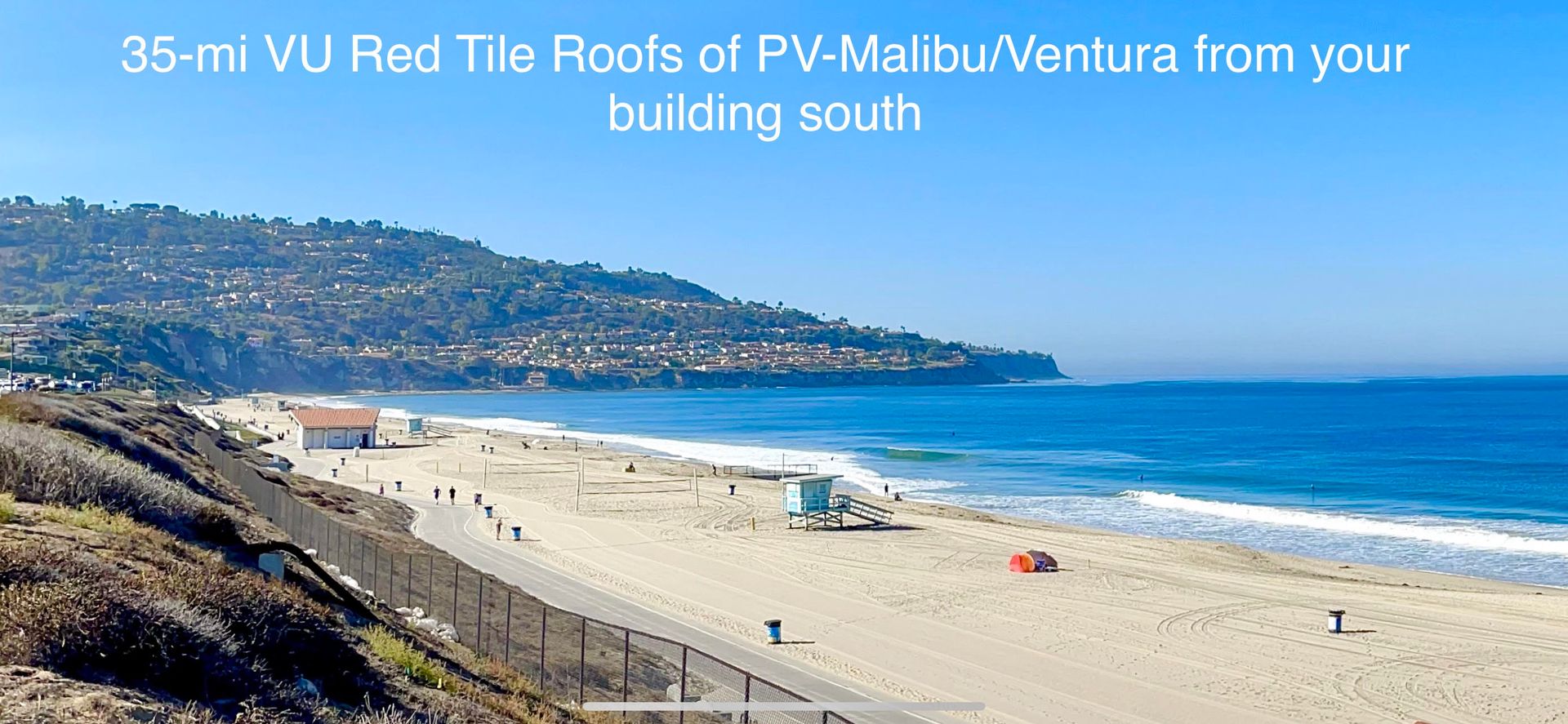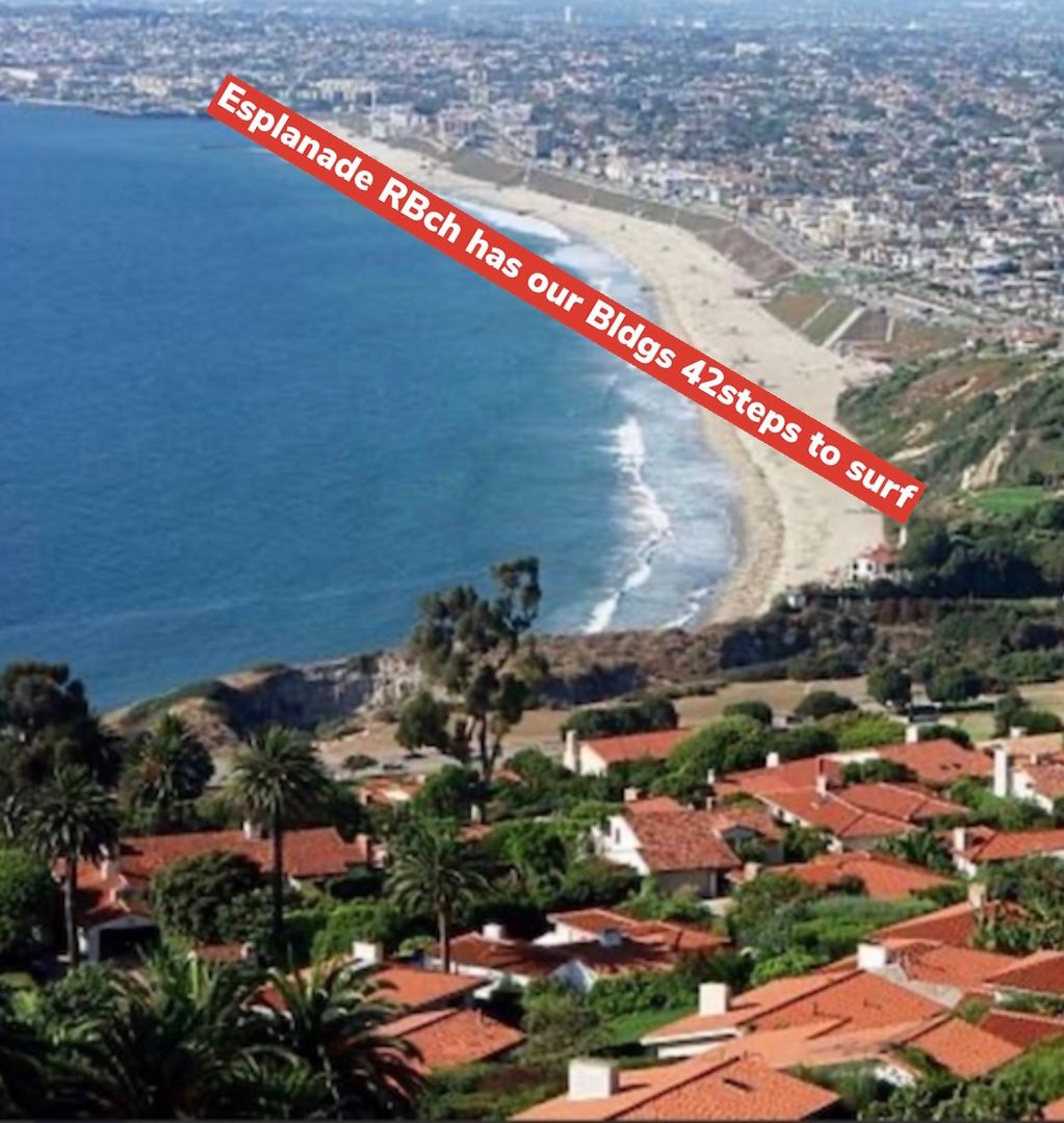 Endowed with a 35 mile View of Santa Monica Bay from the red tile roofs of Palos Verdes to Malibu on to Ventura. Beach Bike path voted best in CA is in the front yard of this Building where walkers, joggers bikers sail kiters and bench warmers are to be found.